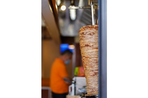 Glutén Tojás TejTortilla, Fúszeres grillezett csirkecombfilé, Jégsaláta, Kígyóuborka, Cheddar sajtszósz, Pirított hagyma, Madársaláta